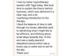 EXCELLENT Based on 20 reviews Esme Freedman2025-07-10Trustindex verifies that the original source of the review is Google. I really loved the hypnobirthing sessions I had with Tigi. They were a lovely time to chat about being pregnant, how I was feeling and just generally helped me feel more relaxed for my birth. Tigi was professional, friendly and very understanding when I was running late or needed to reschedule! Definitely give Tigi/ Dusk Therapies a call if you’re thinking about giving hypnotherapy or hypnobirthing a go! Hannah Mogg2025-07-09Trustindex verifies that the original source of the review is Google. On the lead up to birth I’ve found the thought of labour quite overwhelming and it has made me feel quite anxious. I was recommended Tigi and could not shout her praises enough. She has really helped me feel more prepared, centred and built up my confidence as I prepare for labour. Thank you so much for all your help as I enter this next chapter! Olivia Tee2025-07-06Trustindex verifies that the original source of the review is Google. I felt very relaxed and at ease during my session with Tigi. She listened well and we came up with a plan to try to address the anxieties I’d been having. I really appreciated the way she helped me to think of ways to manage stresses and anxieties. Thanks Tigi! JILLY DRYWOOD2025-06-13Trustindex verifies that the original source of the review is Google. Tigi explained the process in full and was happy to answer any questions I had. I felt I was in very safe, knowledgeable hands and will definitely seek out Tigi’s services again. Highly recommend 💜 Jenny Davis2025-06-13Trustindex verifies that the original source of the review is Google. Tigi at Dusk therapies is wonderful. She walks you through the whole experience in a kind and gentle way making sure that you feel comfortable the whole time. I felt super relaxed after my first session and I look forward to my next! I’d definitely recommend Tigi! Katy Thompson2025-06-05Trustindex verifies that the original source of the review is Google. This was my first experience of hypnotherapy and I totally see how regular sessions would have a positive impact on my mental health and generally improve my ability to cope with the challenges that come with being a single parent. Tigi spent time explaining the neuroscience behind why we have certain thought patterns and also how that relates to my own situation. The hypnosis was the best bit, I felt really blissfully relaxed. It really made me aware of how rarely I feel that switched off. I awoke feeling really positive about my intentions going forward, and this led to the best night of sleep that I have had in ages. Would absolutely recommend Tigi to other mothers who need to learn how to make space to slow down, or how to navigate transitioning through more challenging stages in life.. thank you. Shannon Reid2025-06-03Trustindex verifies that the original source of the review is Google. Tigi was so lovely to talk to, made me feel very comfortable and heard. Her explanations behind the biology were put in a way that were very easy to understand & provoked thought. The hypnotherapy she offers was super relaxing and really takes you out of the dark & helped me relax into the moment. Thank you Tigi x Vicki Smith2025-06-03Trustindex verifies that the original source of the review is Google. Lovely relaxing session, felt very calm and chilled afterwards. Would definitely recommend trying this kind of therapy to others. Interesting neuroscience about the subconscious mind and how this affects us in daily life. Abbie Taylor2025-05-30Trustindex verifies that the original source of the review is Google. After my initial session with Tigi I was left feeling calm and rested. Tigi makes you feel at ease and takes her time to explain the process and techniques she uses in order to fully understand the therapy before you begin. I would thoroughly recommend Tigi at dusk therapies for anyone looking to try something different for themselves.